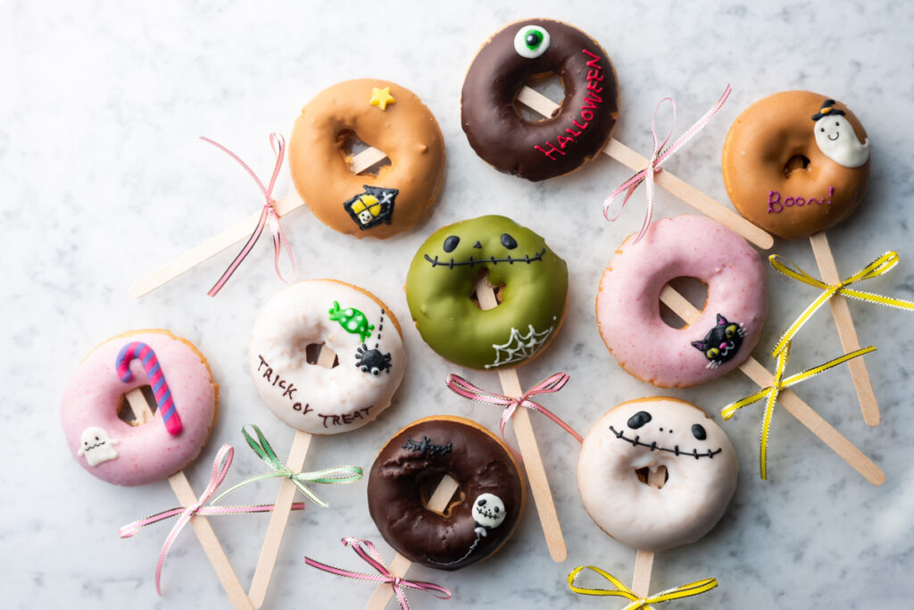 ウフフドーナチュ旧軽井沢では、人気のミニドーナツバーを今年もハロウィン限定デザインでご用意しました。今年は黒猫やおばけ、ジャック・オ・ランタンなどをモチーフにした、全10種類のハロウィンデザインを纏ったドーナツが登場します。味はいちごや抹茶、キャラメルなど全6種類。ミニサイズのスティックタイプドーナツはパーティーにもぴったりです。